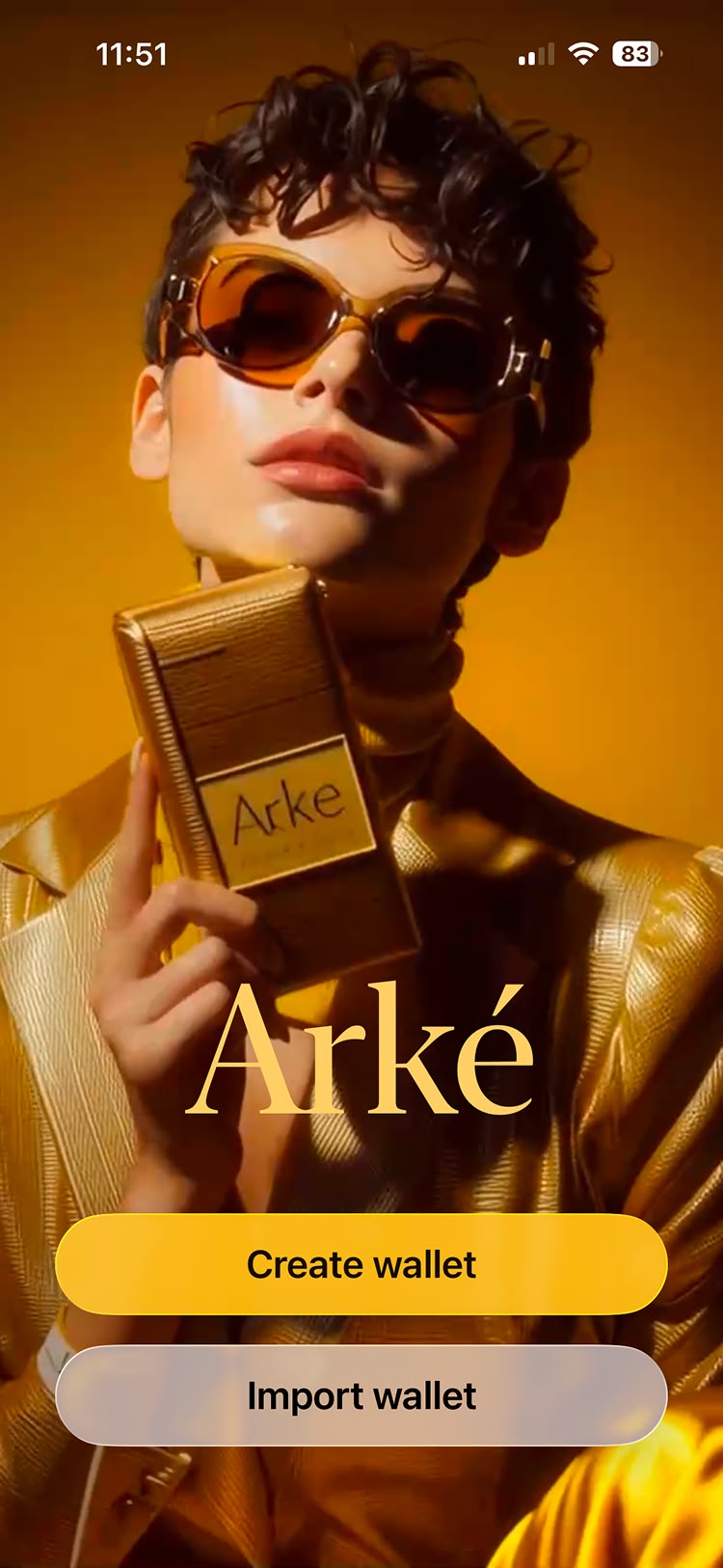 When you first open Arké, you'll go through a simple setup process. Tap "Create Wallet", follow the next few steps, and you're good to go.
