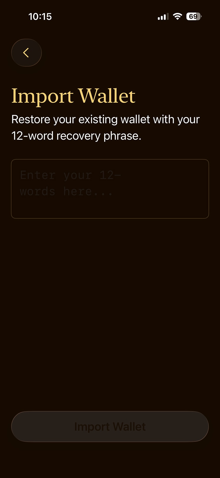 After deletion, you will find yourself back on the cover screen. Tap the Import wallet option.